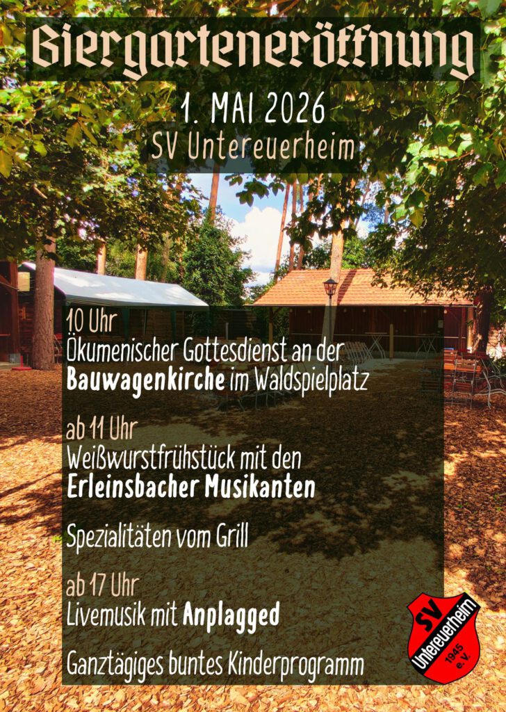 Der Mai ist gekommen, und wir lassen die Instrumente klingen! Am 1. Mai 2026 lädt der SV Untereuerheim zur großen Biergartenöffnung ein, und wir von den Erleinsbacher Musikanten freuen uns riesig, den musikalischen Startschuss geben zu dürfen.